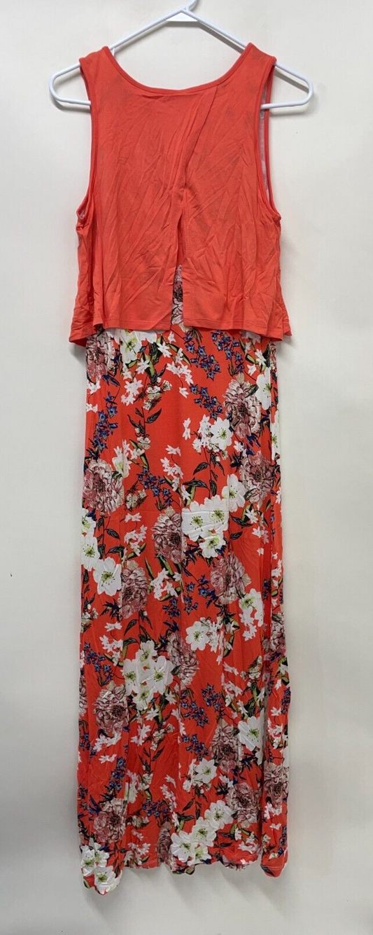 Lascana Womens 8 Layered Look Maxi Dress Coral Orange Floral Pattern X30032-8