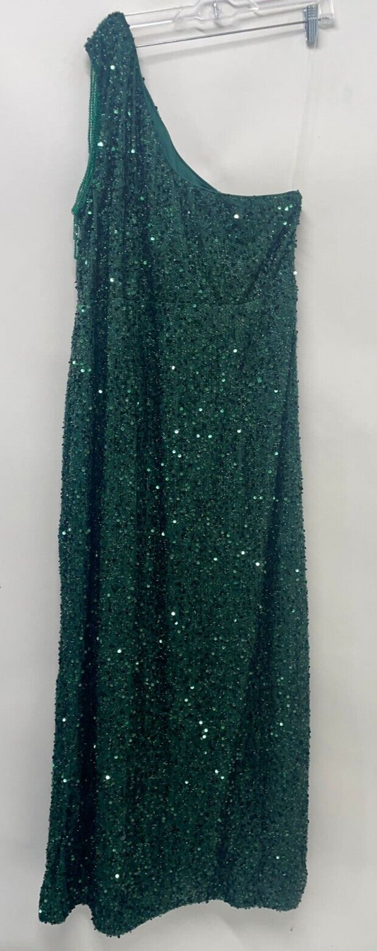 Giffniseti Womens 2XL Slit Green Sequin One Shoulder Dress Maxi Gown Holiday