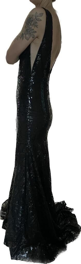 Vnaix Womens 2 Sequin V Neck Sleeveless Ball Gown Black Dress Wedding Train