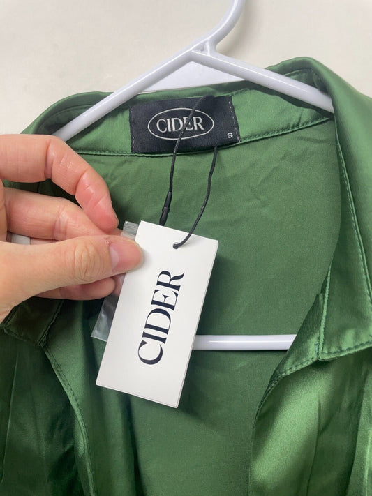 Cider Women's S Dirty Martini Long Sleeve Mini Dress Green Satin Collared NWT