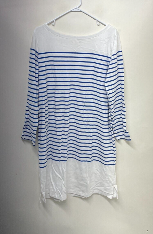 J. Peterman Womens XXL Long Sleeve Stripe T-Shirt Dress Sweater White Boat Neck