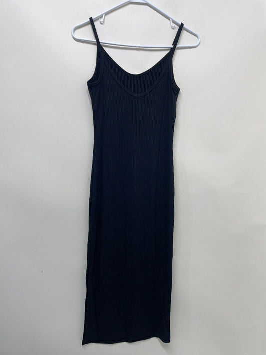 Fabletics Women's XXS Aubrey Rib Dress Black Side Slit Contouring Midi Tank NWT