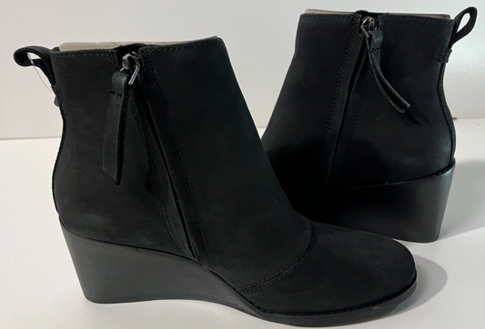 TOMS Women's 7.5 Sutton Leather Wedge Asymmetrical Ankle Bootie Black 10020397