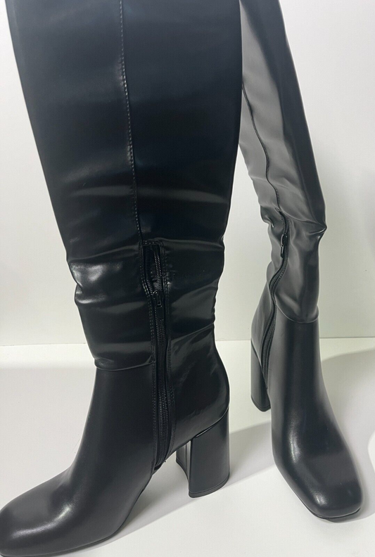 Madden Girl Women's 8.5 Winsloww Faux Leather Block Heel Dress Boot Black
