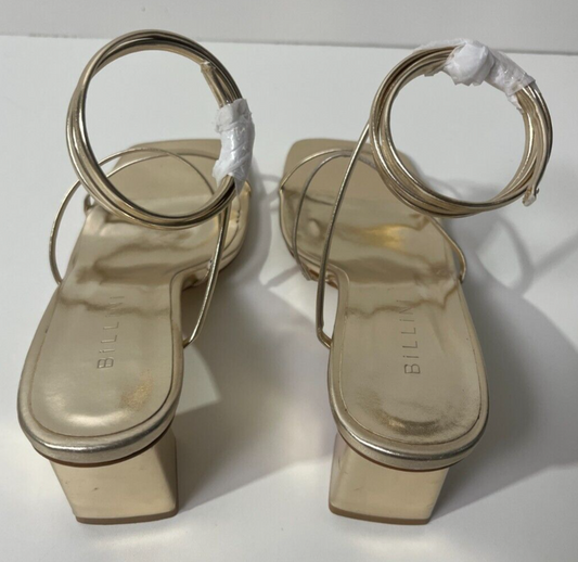 Billini Women's 7 Unice Square-Toe Spiral Strap Block Heel Sandals Antique Gold