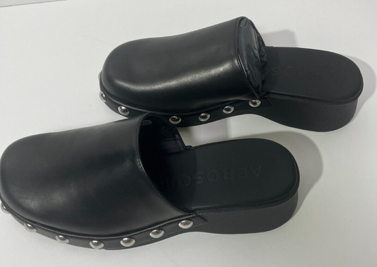 Aerosoles Women's 8M Faye Leather Grommet Detail Slip On Clog Sandals Black