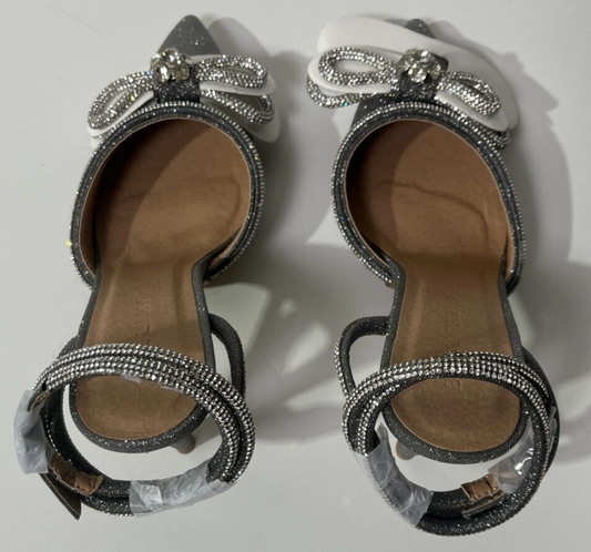 Billini Women's 9 Elope Crystal Bow Pointed-Toe Stiletto Heel Silver Glitter