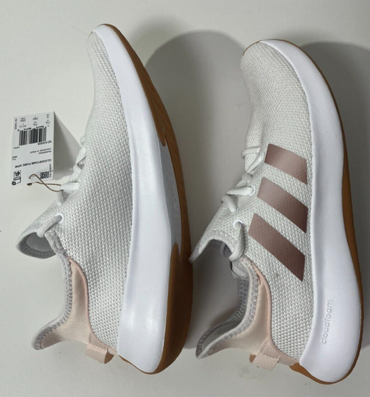 Adidas Women's 9 Cloudfoam Pure White Sandy Pink Metallic Sneaker Shoes ID1059