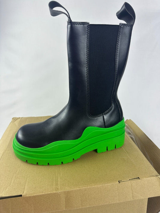 Vertundy Womens 6 Mid Calf Rain Boot Black Green Leather Waterproof 1122