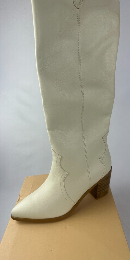 Billini Womens 9 Novena White Knee High Western Boots Block Heel Pointed Toe