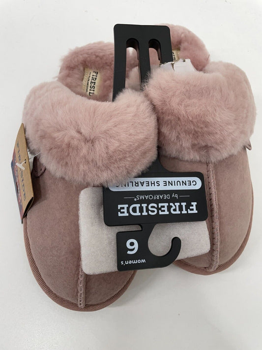 Dearfoams Fireside Womens 6 Sydney Genuine Shearling Scuff Slippers Dusty Pink