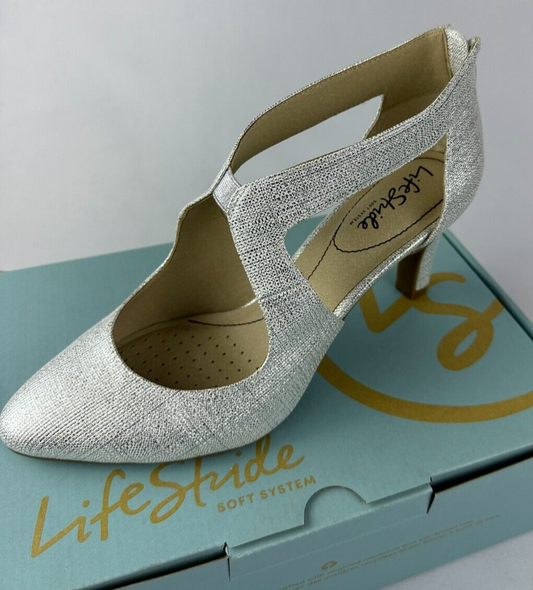 Life Stride Womens 8.5 Giovanna 2 Pump Shoes Silver Almond Toe Cutout G0661S2900