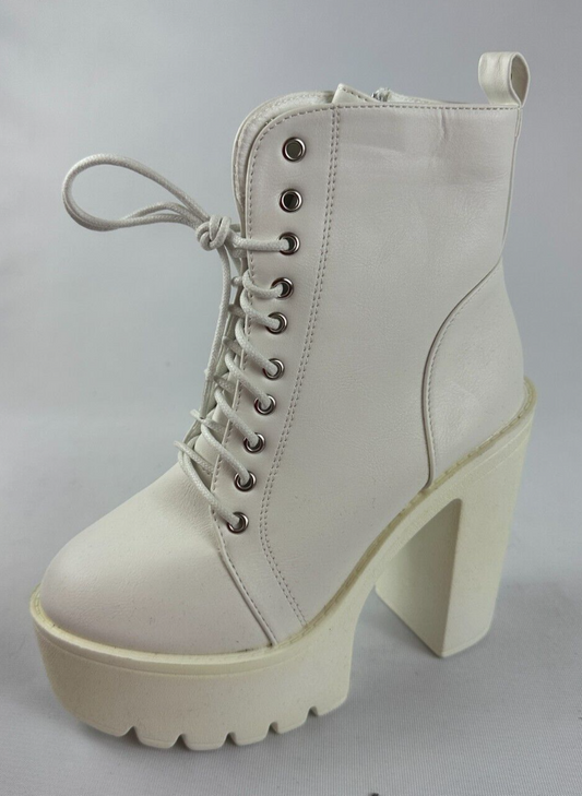 Womens Size 38 White Leather Platform Chunky High Heeled Boots Cosplay Costume
