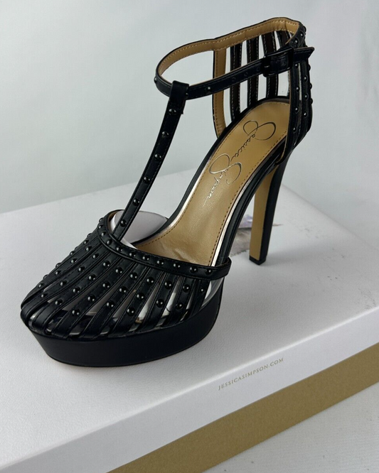 Jessica Simpson Womens 8 Bakir Black Ankle Strap Almond Toe Stiletto Heel