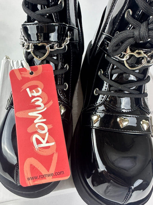 Romwe Womens EU 39 Platform Ankle Boots Black Faux Patent Leather Goth Punk Rave