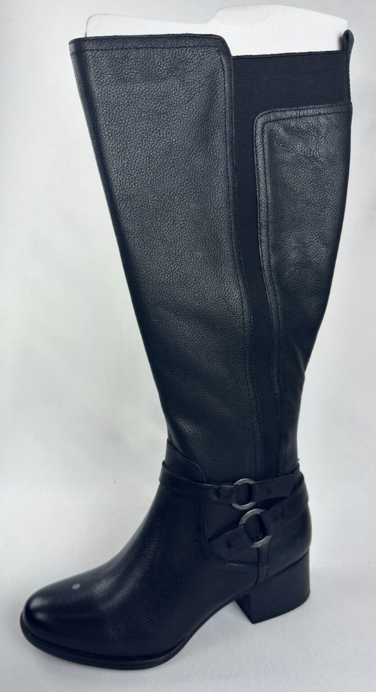 Naturalizer Womens 7 Kiana Black Wide Calf Leather Riding Boots H3291L1002