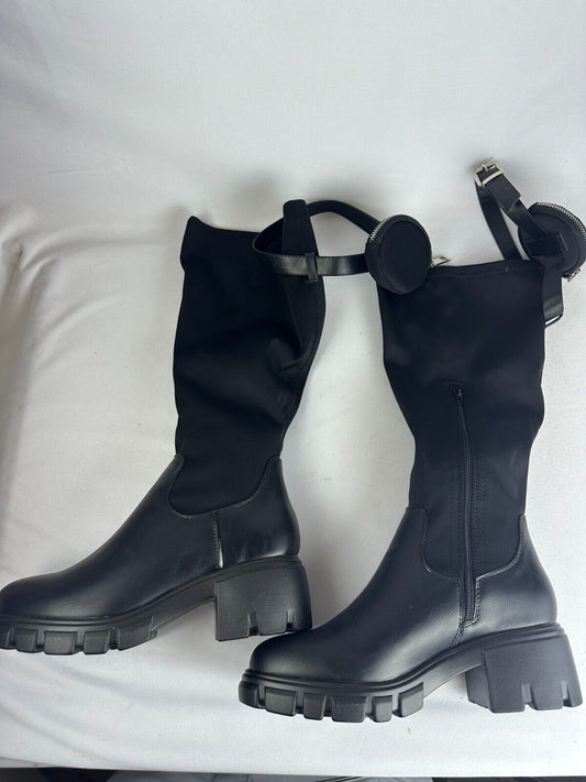 Shoe Dazzle Womens 8.5 Ramerra Lug Sole Boots Black Caviar W/ Pouch Zip Closure