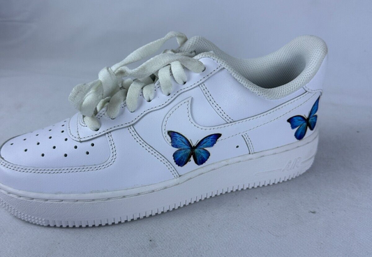 Nike Womens 8.5 Air Force 1 Low Custom Blue Butterfly White Sneakers DD8959-100