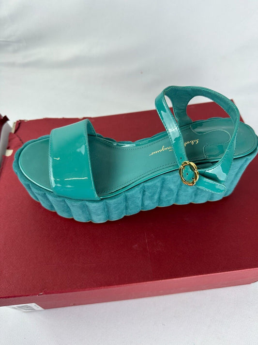 Salvatore Ferragamo Womens 8 Tropea Jade Vine Leather Platform Sandals 0684894