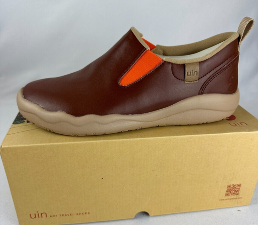 UIN Art Travel Womens 7.5 Cuenca Burgundy Leather Slip On Shoes Lightweight