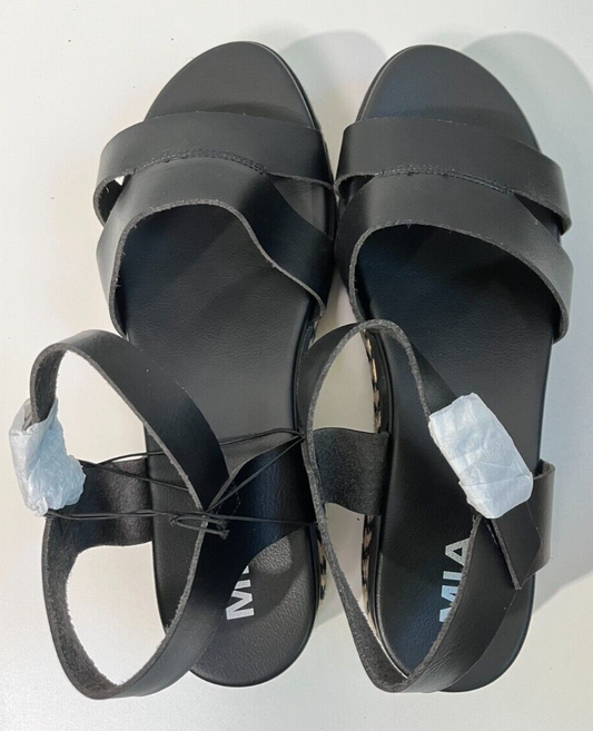 MIA Women's 9.5 Lydia Leather Ankle Strap Platform Espadrille Wedge Sandal Black