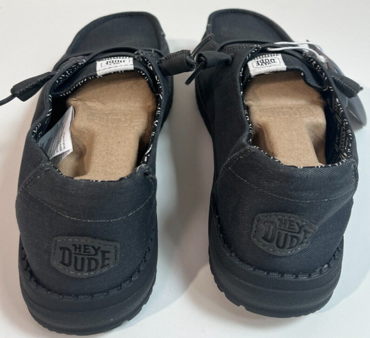 Hey Dude Women's 8D Wendy Stretch Canvas Wide Slip On Casual Shoes Black