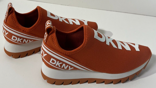 DKNY Women's 6.5 Abbi Slip-On Logo Sock Sneakers Shoes Spicy Orange K1421737