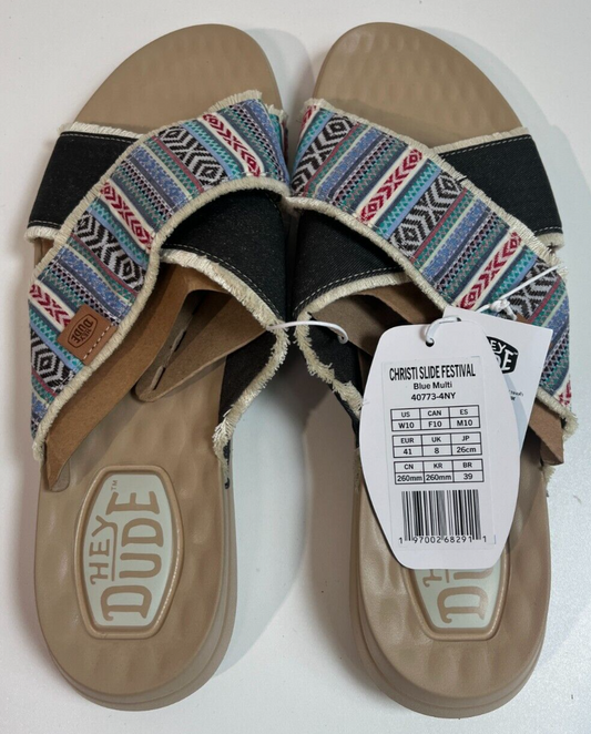 Hey Dude Women's 10 Cristi Slide Festival Blue Multi Print Sandals 40773-4NY