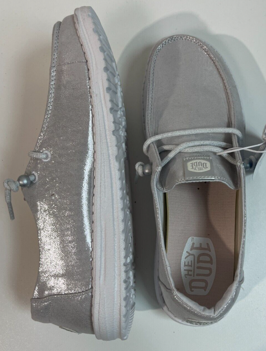 Hey Dude Women's 9 Wendy Metallic Shine Slip On Casual Shoes Silver 40903-040