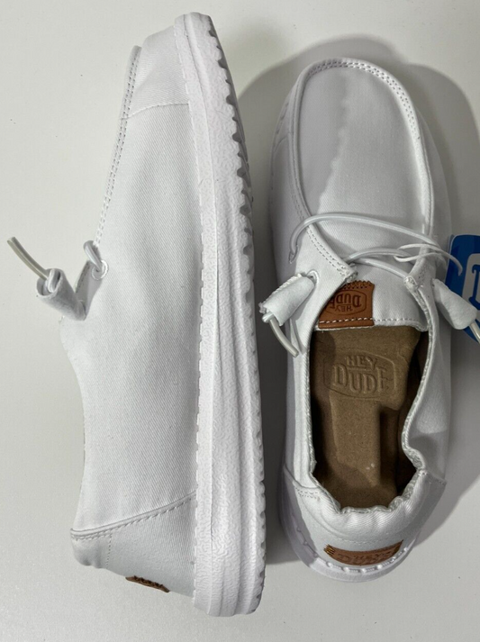 Hey Dude Women's 7D Wendy Stretch Canvas Wide Slip On Shoes White 41804-100