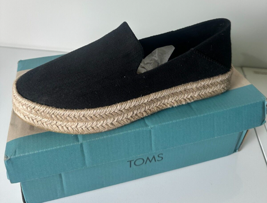 TOMS Women's 6.5 Carolina Heavy Twill Espadrille Slip On Shoes Black 10020990