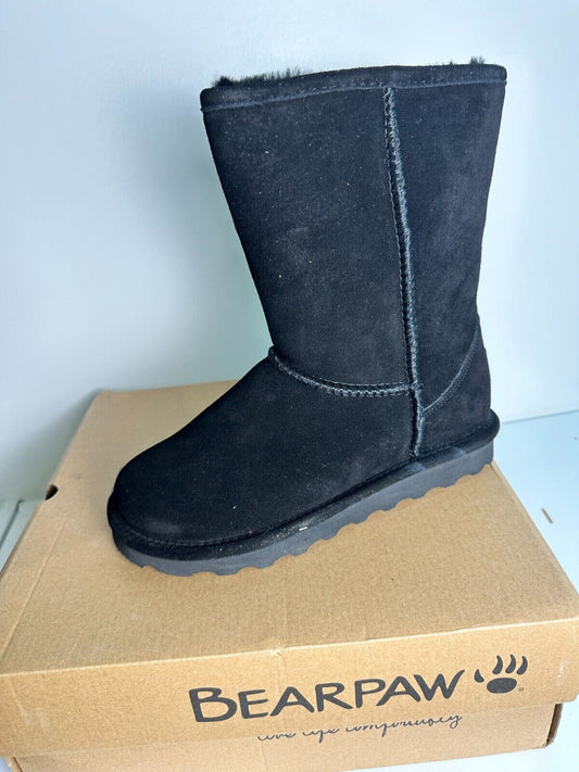 Bearpaw Women's 7 Elle Water Resistant Short Fur Boot Black Suede 1959W-011