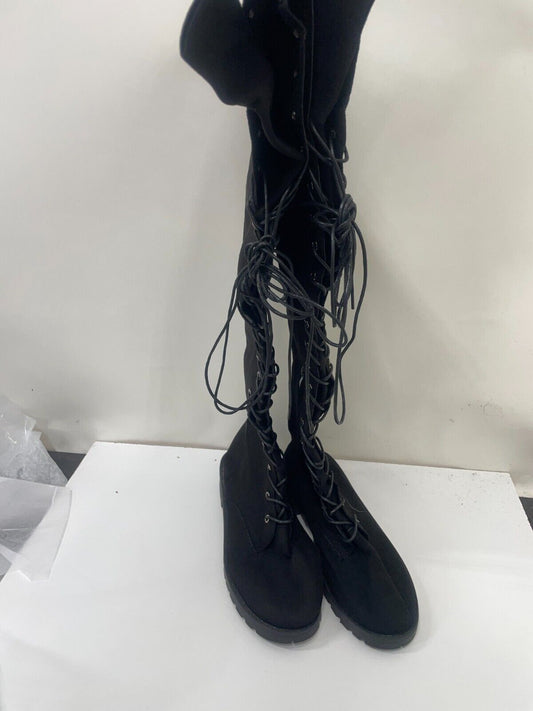 Womens EU 41 Sexy Trendy Lace Up Thigh Knee High Boots Black Round Toe Cosplay