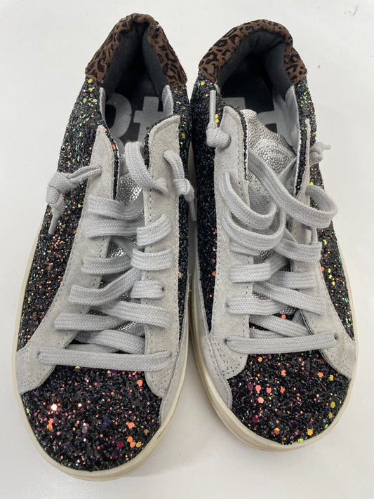 P448 Womens 36 John Glitter Melange Low Top Sneaker Black Gray Leather Shoes