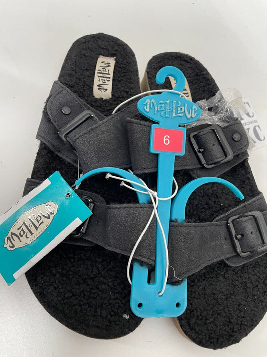 Mad Love Womens 6 Black Buckle Slip On Sandals Faux Fur Lining F00318008