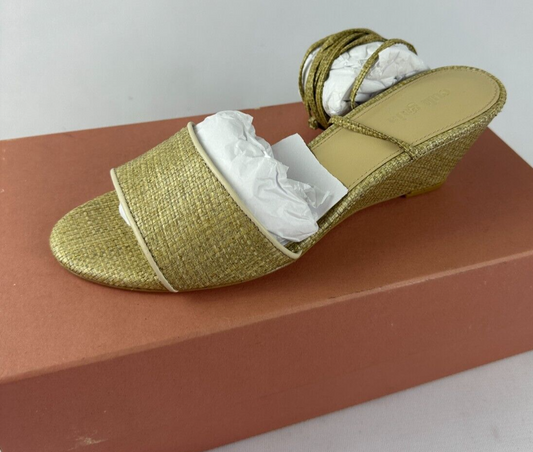 Cult Gaia Womens Size EU38 Mirai Natural Woven Ankle Wrap Strap Wedge Sandals