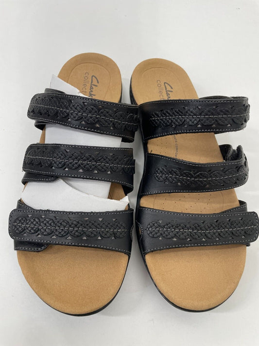 Clarks Womens 8M Laurieann Cove Sandals Black Leather Adjustable Strap 26164834