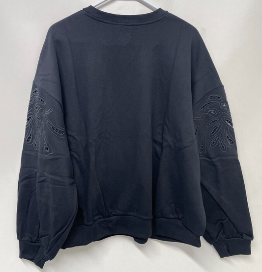 Gap Womens 2XL Vintage Soft Eyelet Sleeve Sweatshirt Black Relaxed Fit 729652