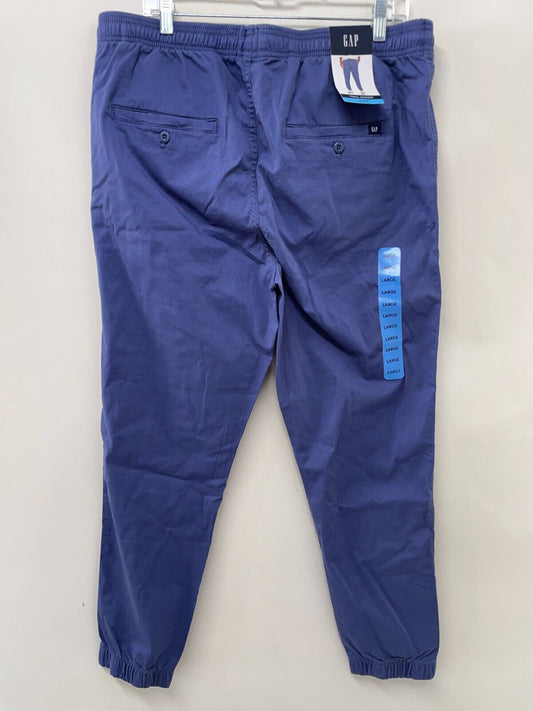 Gap Mens L Twill Jogger Drawstring Pants Blue Indigo Elastic Waist Slash Pockets