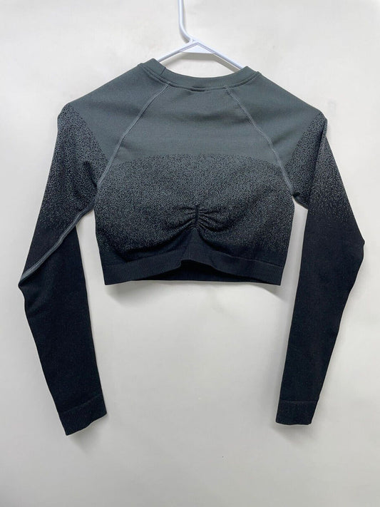 Gymshark Womens S Adapt Seamless Ombre Long Sleeve Crop Top Black Gray Gym