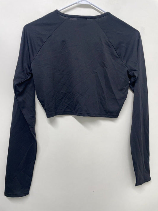 Gymshark Womens S Training Long Sleeve Crop Top Black Fitted Crewneck B2A4F-BBBB