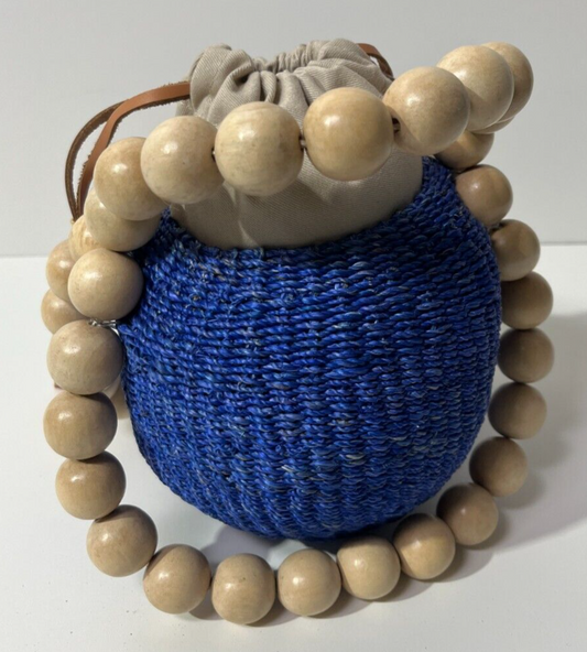Aranaz Women's Gumball Mini Bucket Bag Blue Beaded Top Handle Drawstring Closure