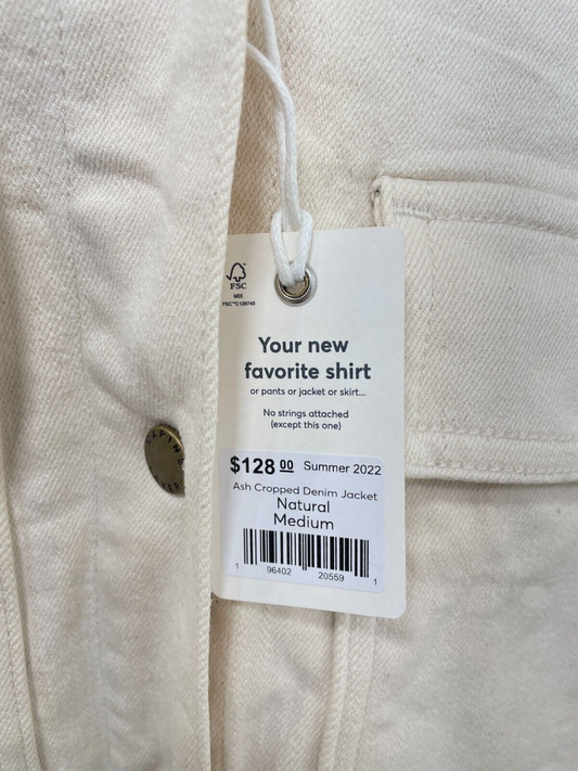 Marine Layer Women's M Ash Cropped Denim Jacket Natural Beige Trucker Jean
