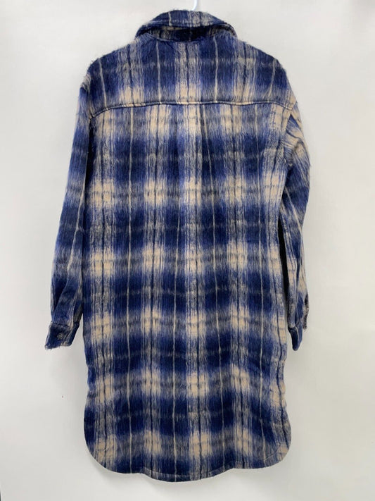 ShoeDazzle Womens L Flannel Long Shacket Blue Multi Plaid Overcoat CA2357319