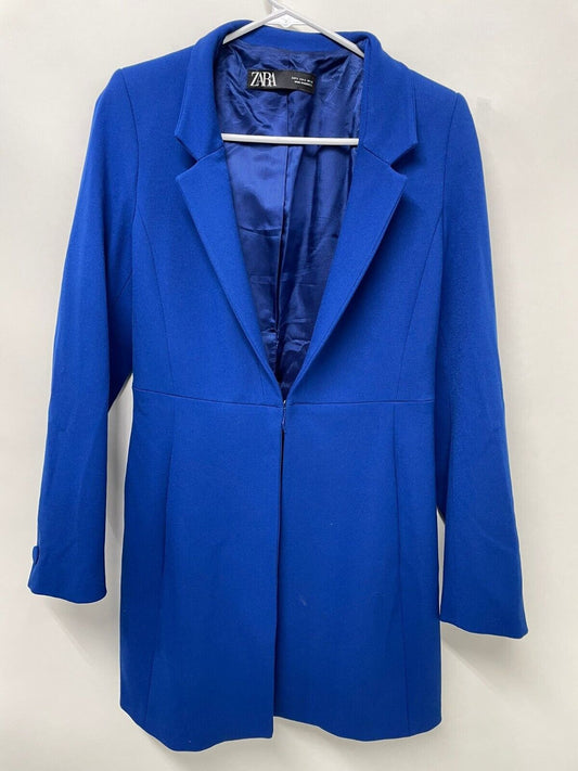 Zara Womens S Inverted Lapel Long Blazer Frock Coat Jacket Royal Blue