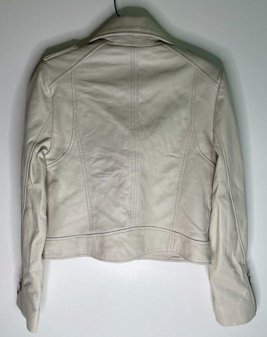 Lamarque Womens S Donna Iconic Leather Biker Jacket Ivory Zippered Sleeves