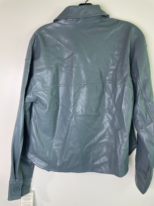 7 For All Mankind Womens S Faux Leather Jacket Trooper Blue Moto Long Sleeve