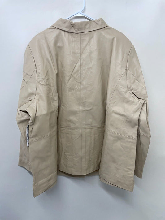 Jessica London Womens Plus 30W Leather Blazer Jacket Beige Fully Lined 02-0047-7