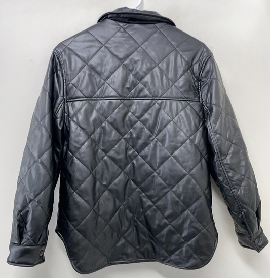 Love Tree Womens L Charisma Diamond Quilted Jacket Black Faux Leather Shacket