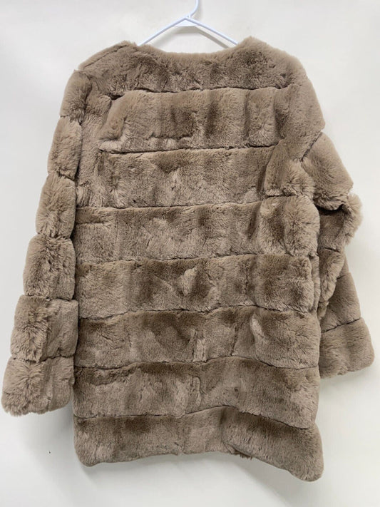 Fashion Nova Womens L With Love Faux Fur Coat Mocha Open Front Side Pockets